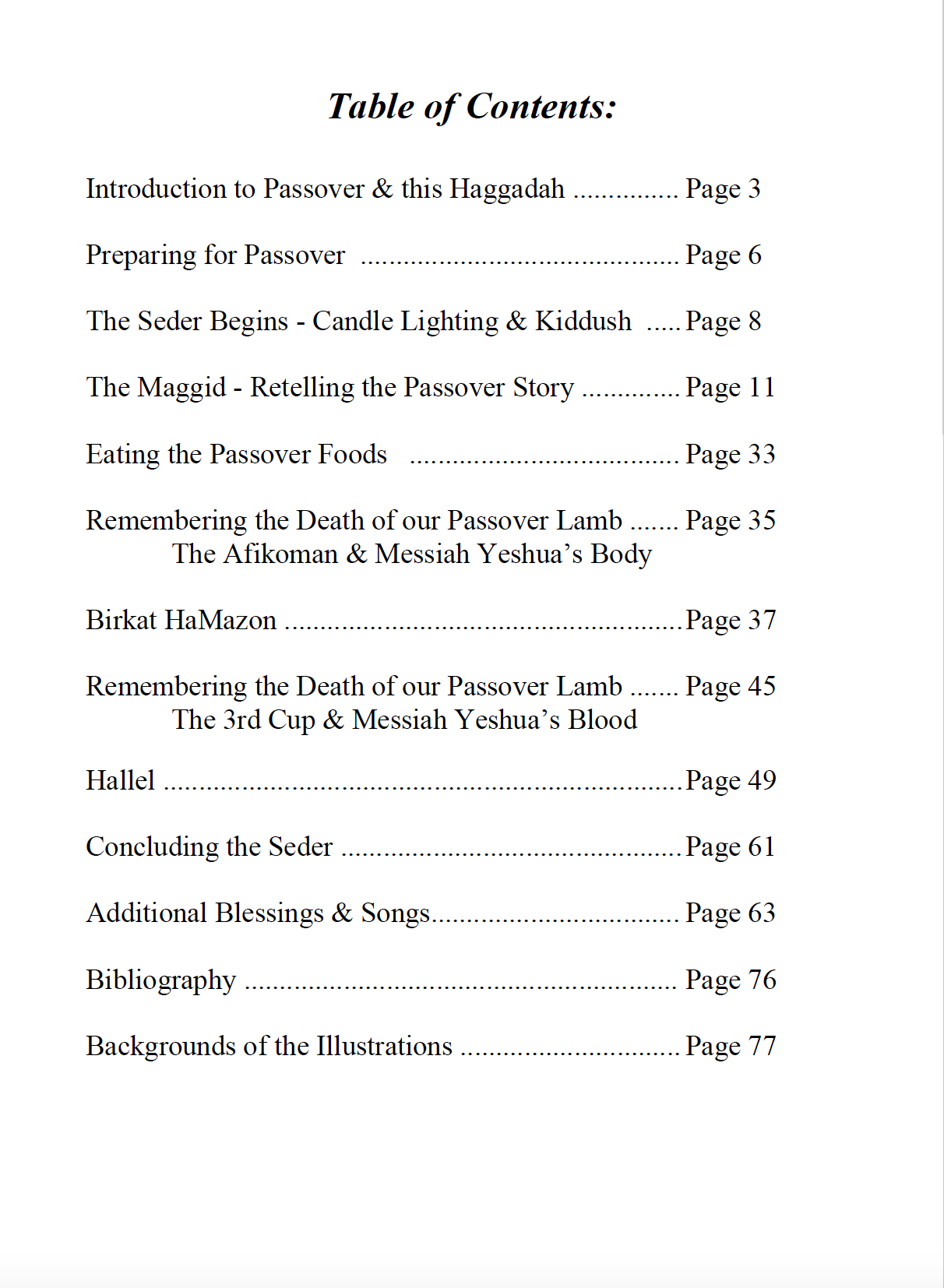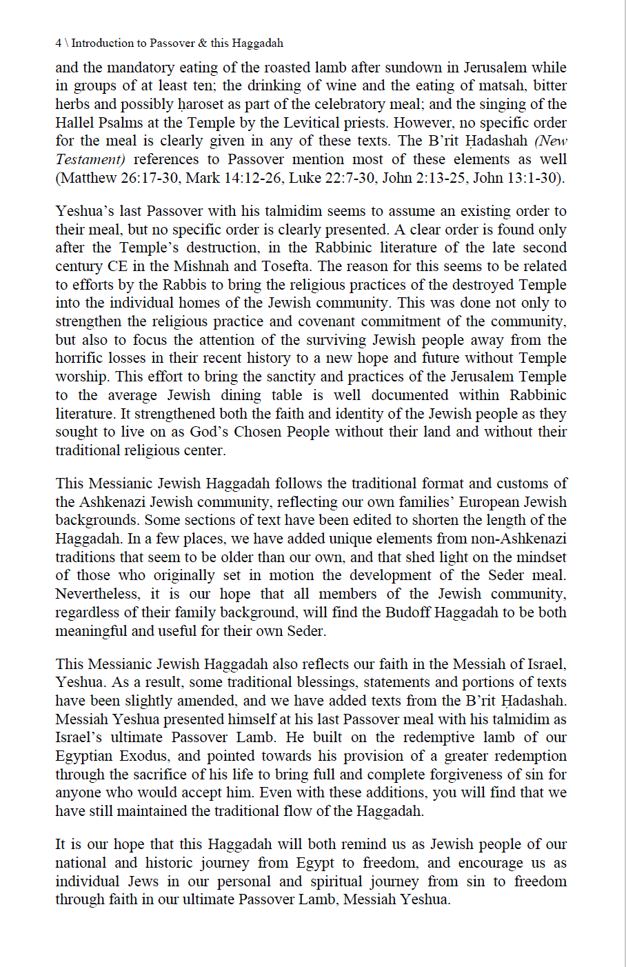 It is our hope that this Haggadah will both remind us as Jewish people of our national and historic journey from Egypt to freedom, and encourage us as individual Jews in our personal and spiritual journey from sin to freedom through faith in our ultimate Passover Lamb, Messiah Yeshua.