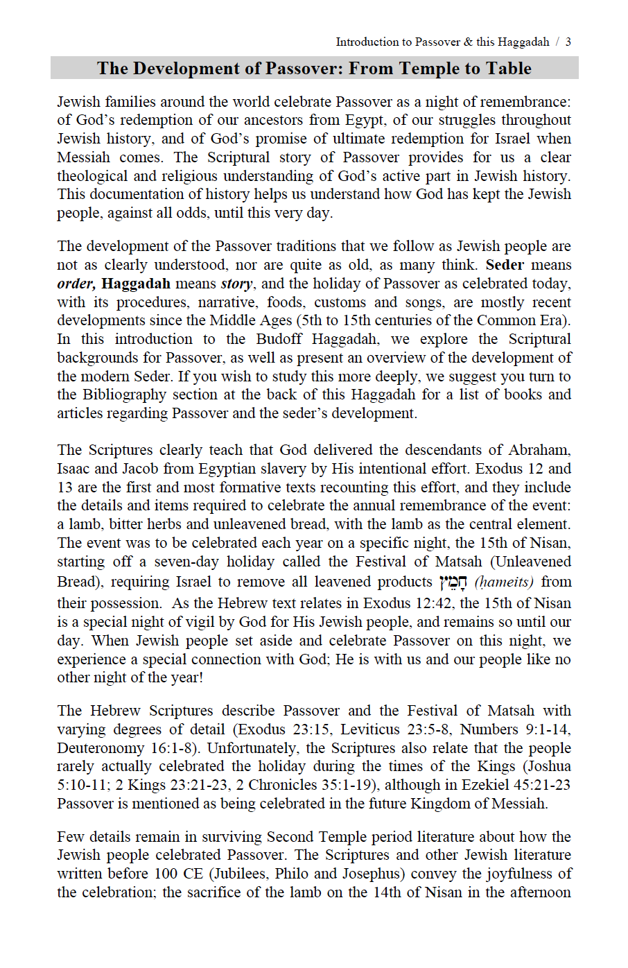 This Messianic Jewish Haggadah follows the traditional format and customs of the Ashkenazi Jewish community, reflecting our own families’ European Jewish backgrounds. Some sections of text have been edited to shorten the length of the Haggadah. In a few places, we have added unique elements from non-Ashkenazi traditions that seem to be older than our own, and that shed light on the mindset of those who originally set in motion the development of the Seder meal. Nevertheless, it is our hope that all members of the Jewish community, regardless of their family background, will find the Budoff Haggadah to be both meaningful and useful for their own Seder.