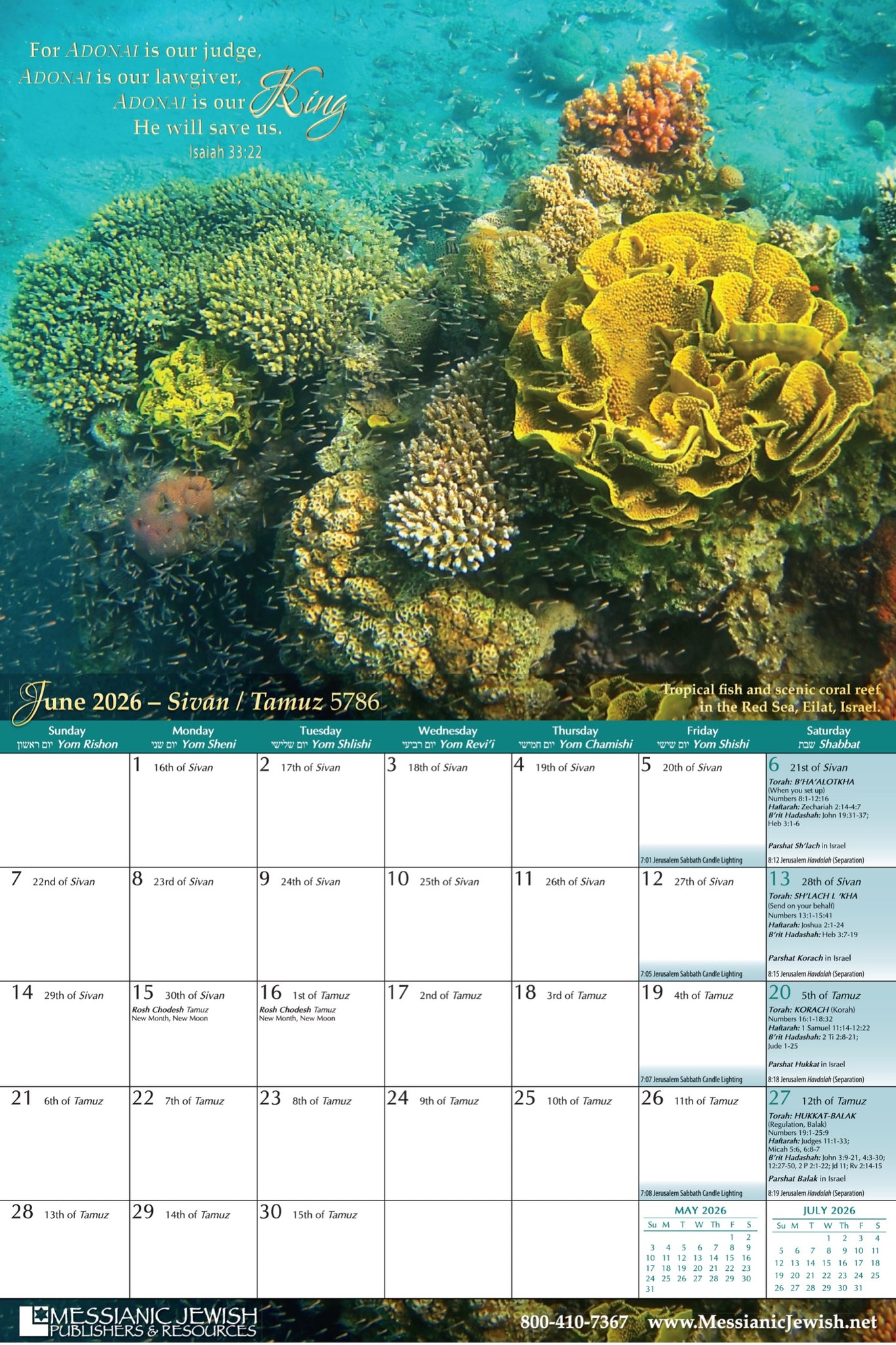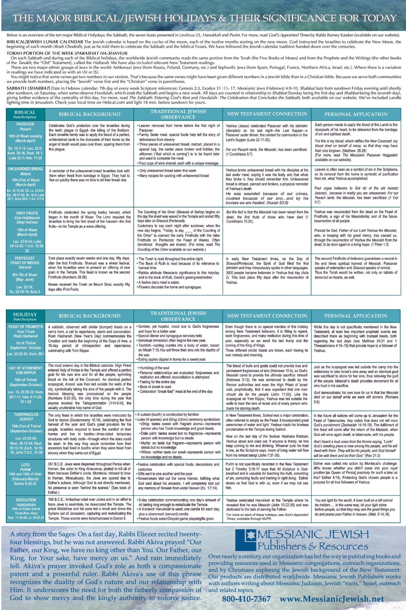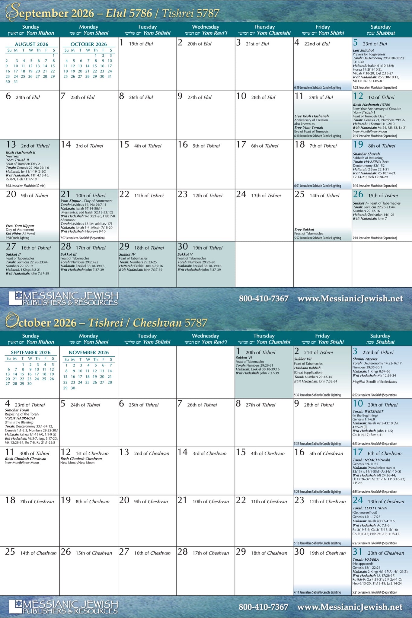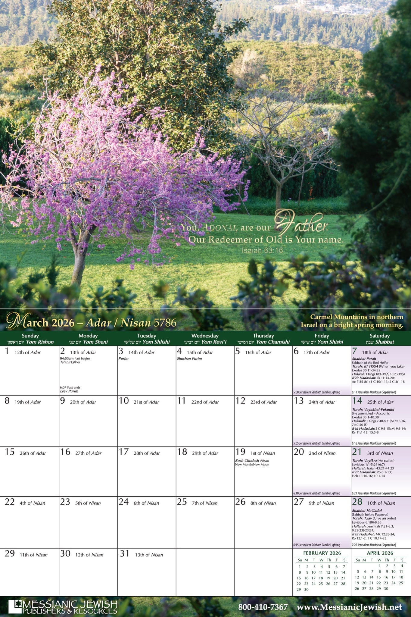 -Includes weekly Torah and Haftarah (Prophets) portions read in synagogues worldwide, and suggested New Testament (B’rit Hadashah) readings
