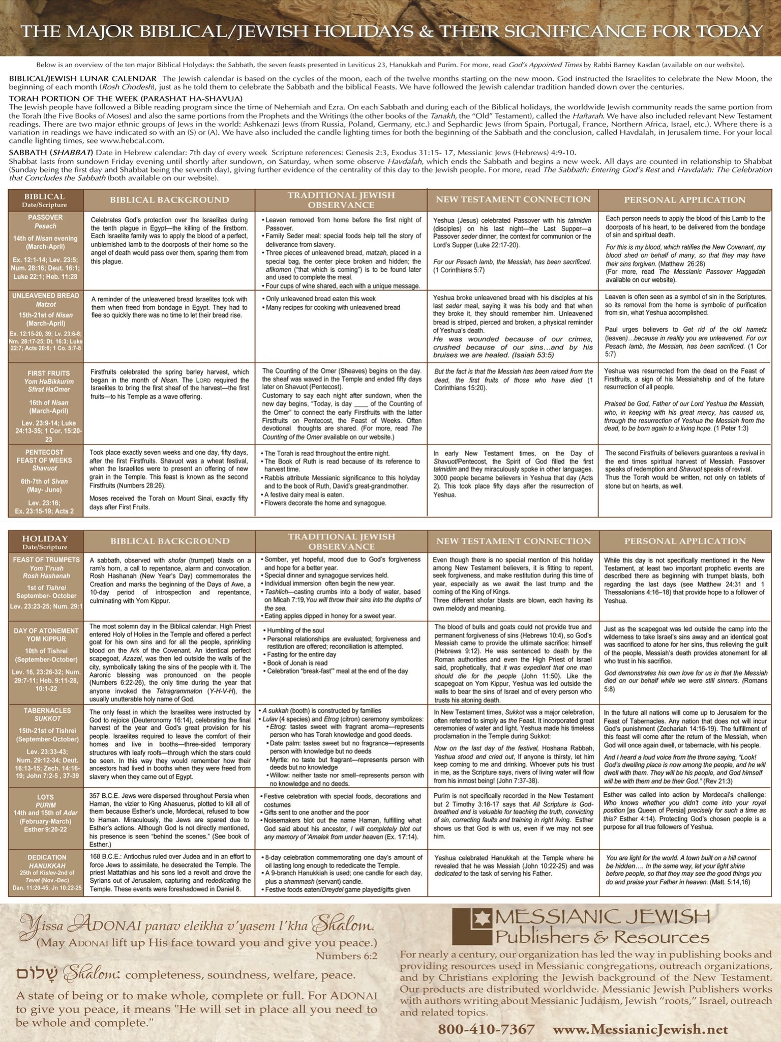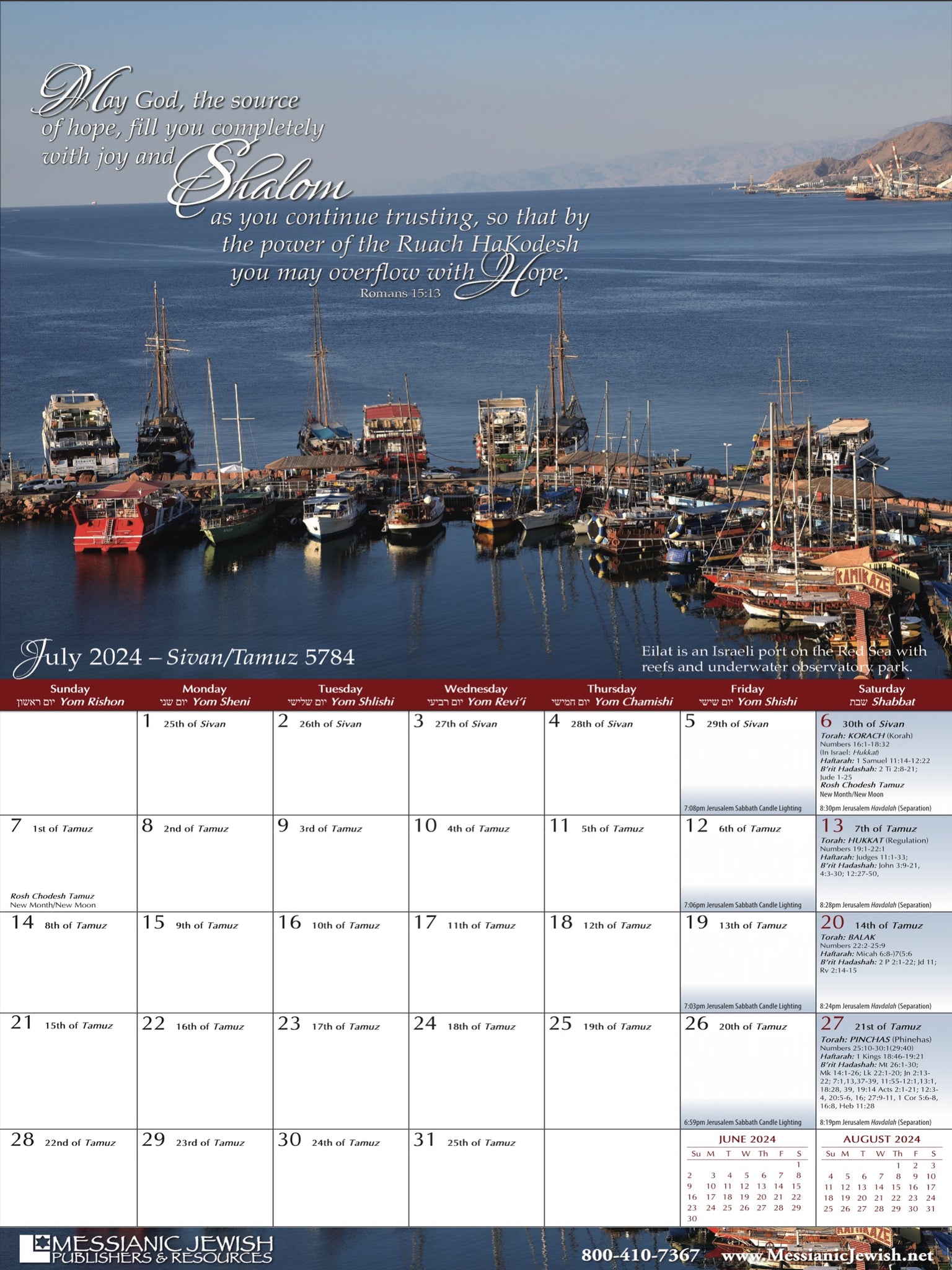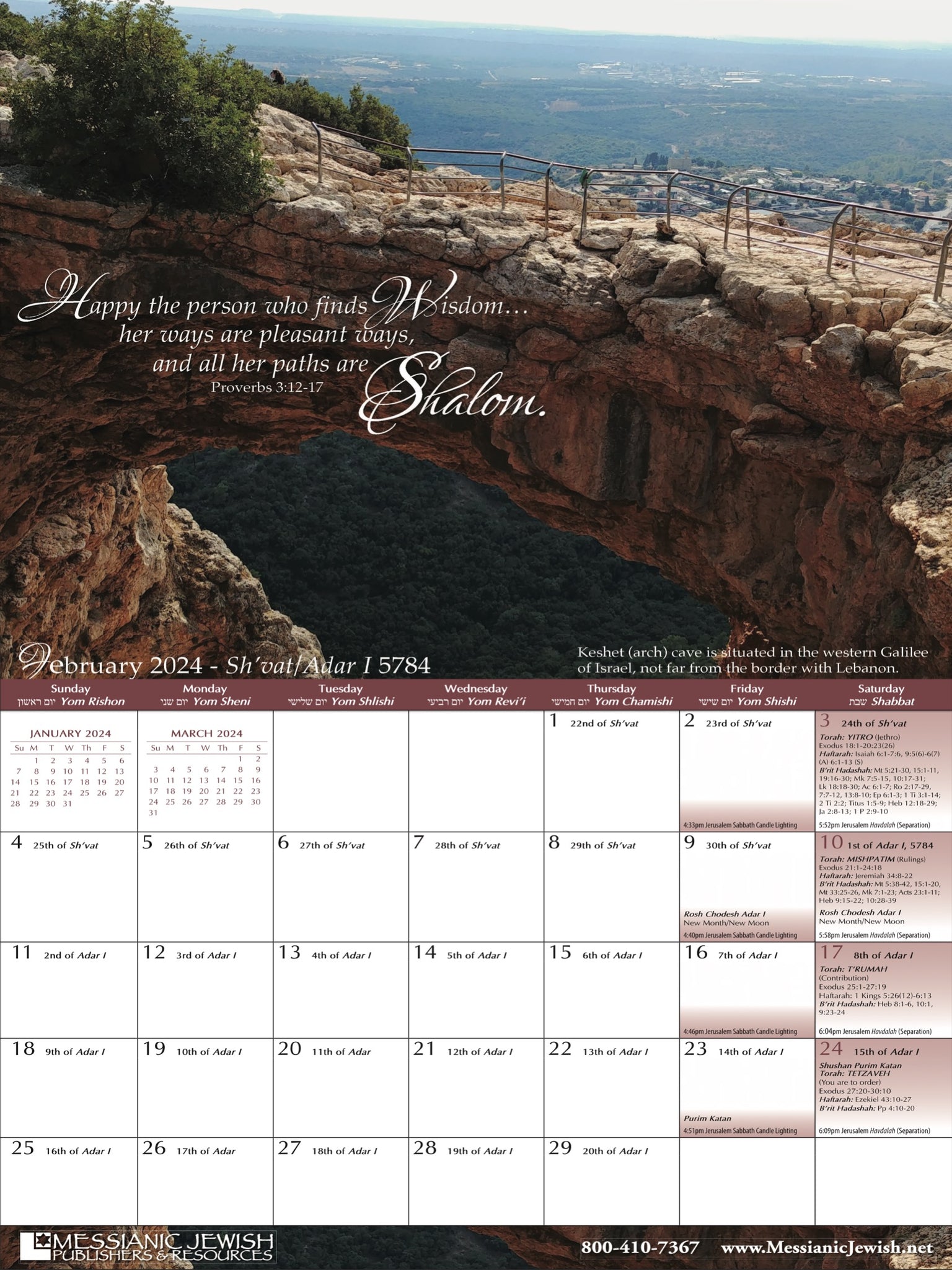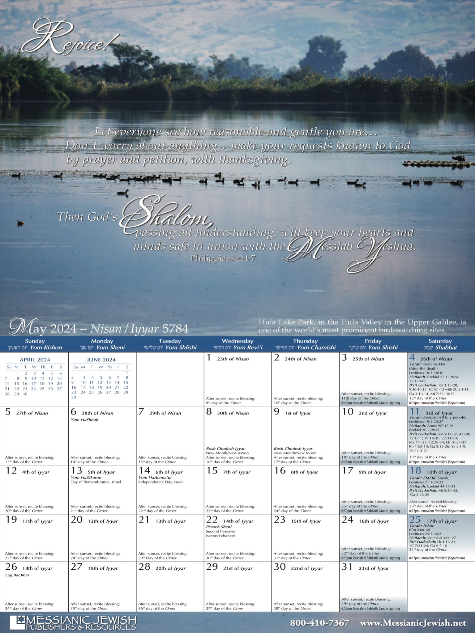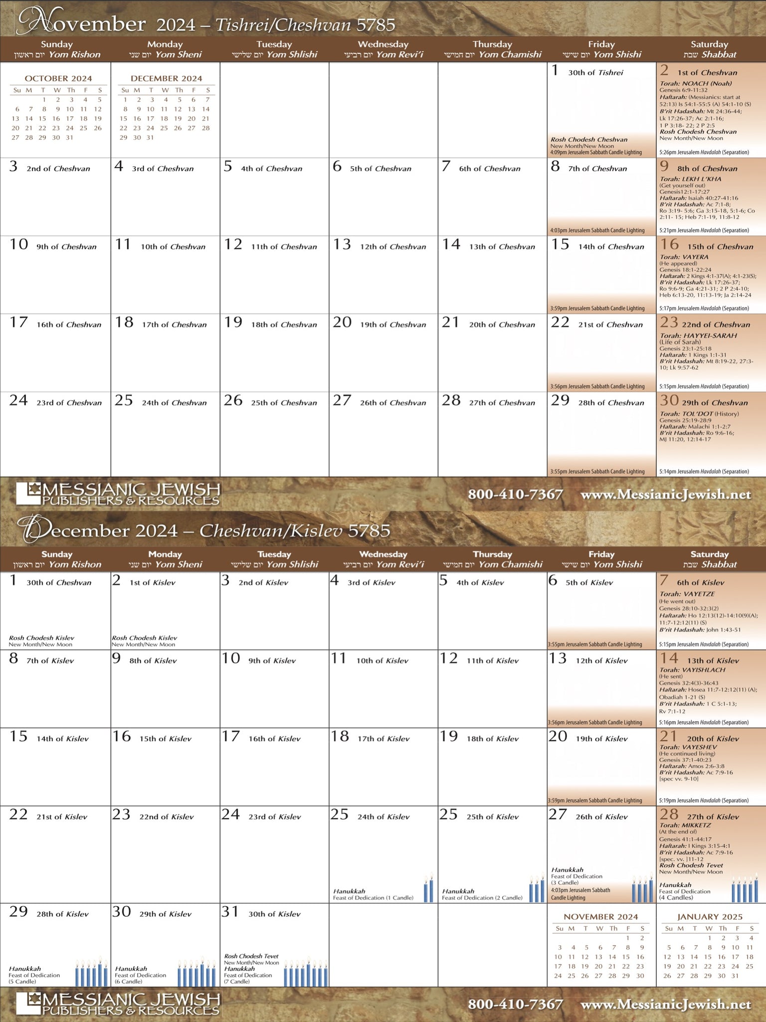 -Includes weekly Torah and Haftarah (Prophets) portions read in synagogues worldwide, and suggested New Testament (B’rit Hadashah) readings