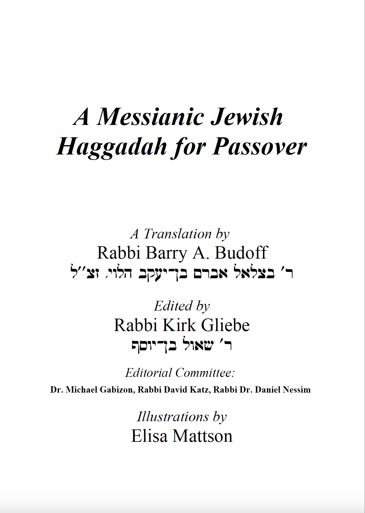 This Messianic Jewish Haggadah follows the traditional format and customs of the Ashkenazi Jewish community, reflecting our own families’ European Jewish backgrounds. Some sections of text have been edited to shorten the length of the Haggadah. In a few places, we have added unique elements from non-Ashkenazi traditions that seem to be older than our own, and that shed light on the mindset of those who originally set in motion the development of the Seder meal. Nevertheless, it is our hope that all members of the Jewish community, regardless of their family background, will find the Budoff Haggadah to be both meaningful and useful for their own Seder.
